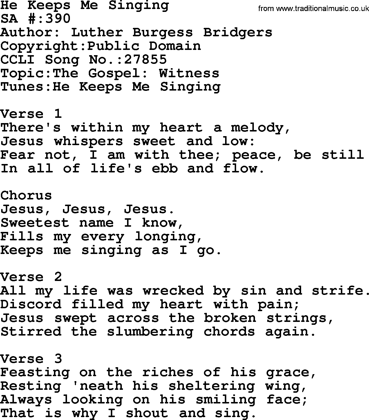 Salvation Army Hymnal Song He Keeps Me Singing With Lyrics