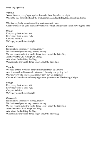 Don't forget to bookmark jessie j price tag lyrics download using Ctrl + D (PC) or Command + D (macos). If you are using mobile phone, you could also use menu drawer from browser. Whether it's Windows, Mac, iOs or Android, you will be able to download the images using download button.