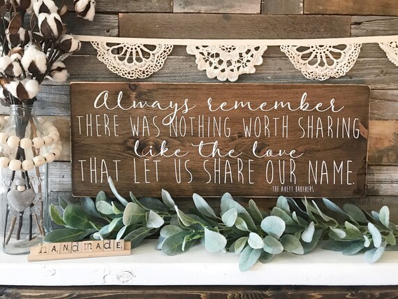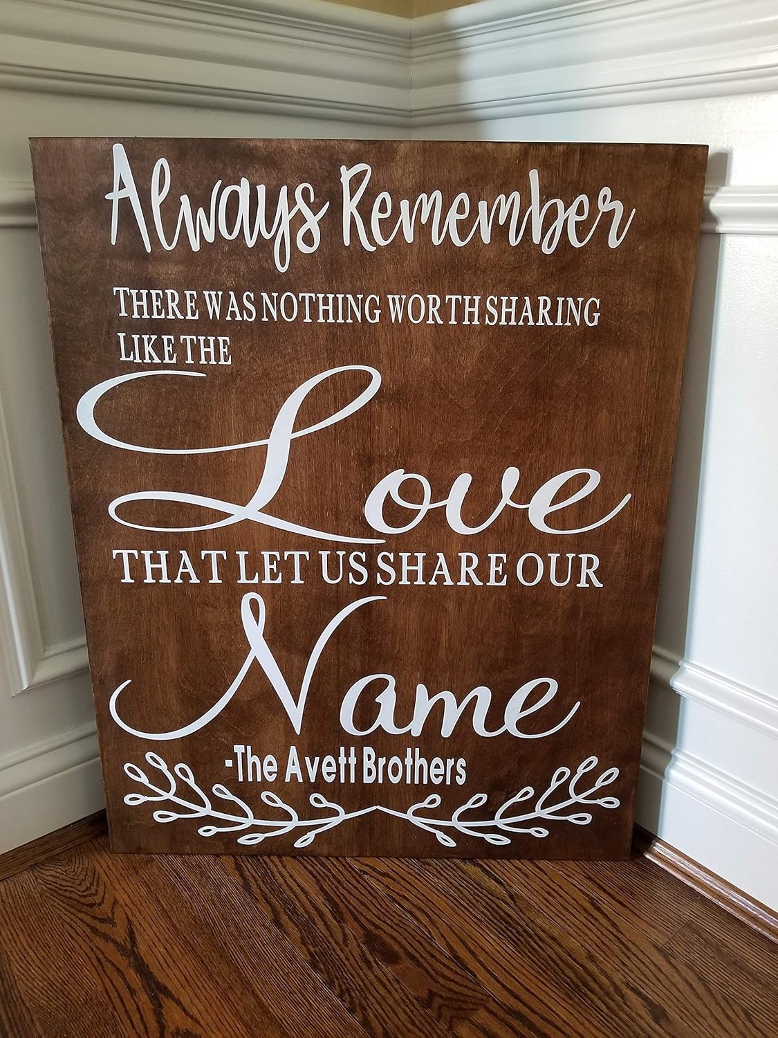Large Always Remember There Was Nothing Worth Sharing Like The Love That Let Us Share Our Name Song Lyric Sign 48 X 17 25