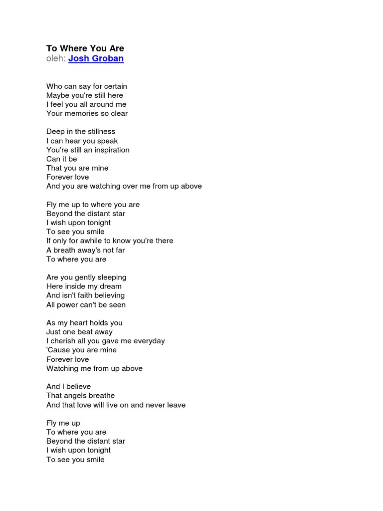To Where You Are Lyrics Josh Groban