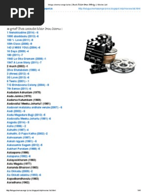 Telugu Cinema Songs Lyrics త ల గ స న మ