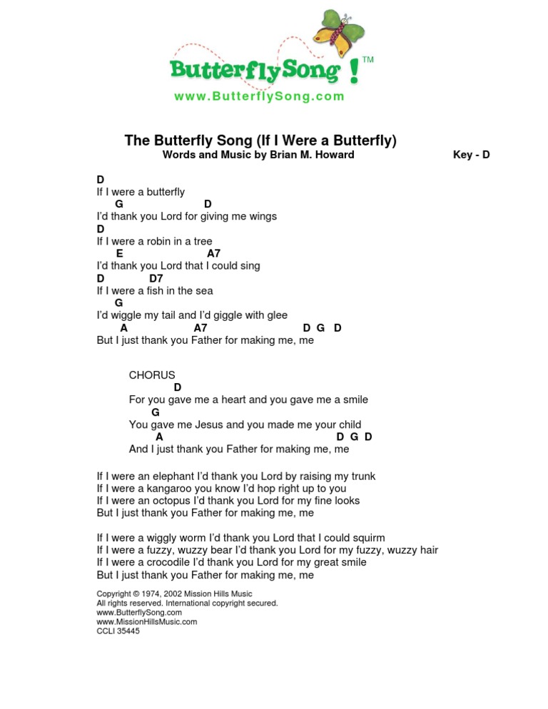 Butterfly Song Chords Lyrics If I Were A Butterfly