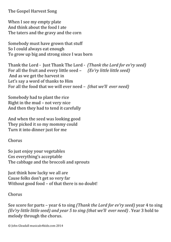 Assembly Songs Harvest Song Thank You God For Harvest From Out Of The Ark Music Sample