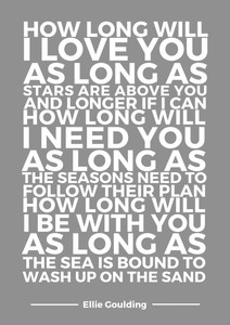 Details About How Long Will I Love You Lyrics Ellie Goulding Typography A4 Poster Print