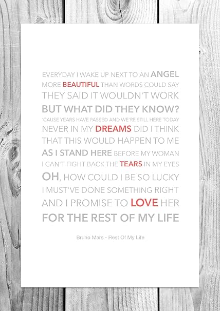 Details About Bruno Mars Rest Of My Life Music Song Lyric Print Poster Art Wedding Dance Gift