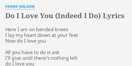 Frank Wilson Do I Love You Indeed I Do Lyrics Genius