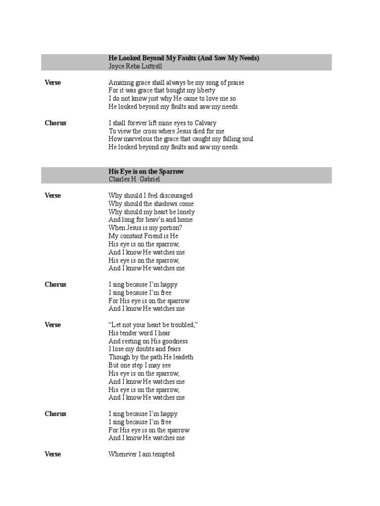 He Looked Beyond My Faults And Saw My Need