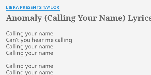 Anomaly Calling Your Name Lyrics By Libra Presents Taylor