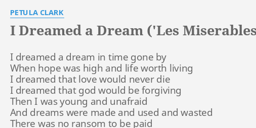 I Dreamed A Dream Les Miserables Lyrics By Petula Clark