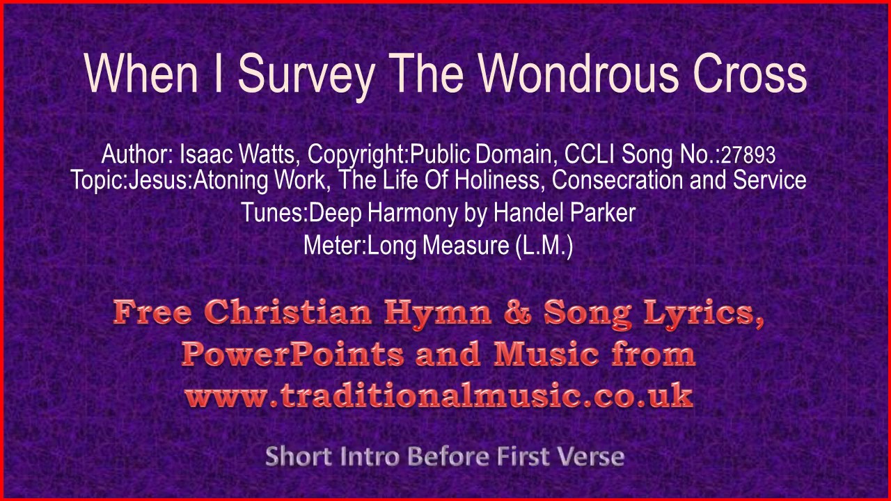 When I Survey The Wondrous Cross Deep Harmony Hymn Lyrics Music
