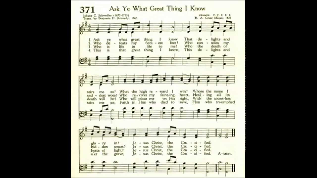 Ask Ye What Great Thing I Know Hymn Lyrics Music