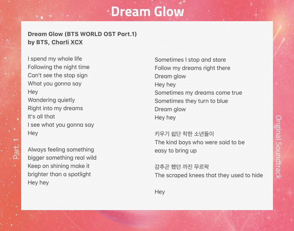 Dream Glow Bts World Ost Part 1 Bts Charli Xcx Lyrics