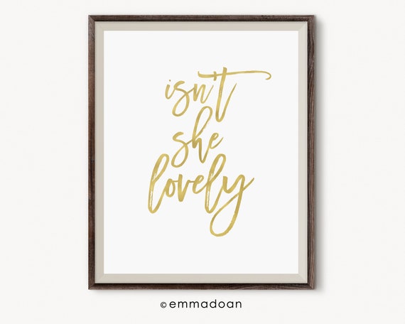 Isn T She Lovely Isn T She Wonderful Sign Gold Nursery Art Printable Song Lyric Print Girl Nursery Decor Above Crib Decor Girl Bedroom