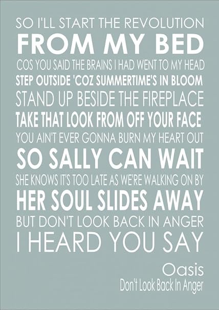 Don T Look Back In Anger Oasis Lyrics Word Wall Art