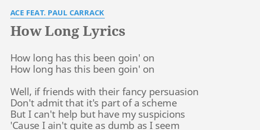 How Long Lyrics By Ace Feat Paul Carrack How Long Has This