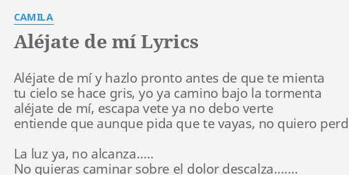 Alejate de mi lyrics. Alejate de mi lyrics. Translation of alejate de mi by camila from spanish to english version 2. Alejate de mi y hazlo pronto antes de que te mienta.