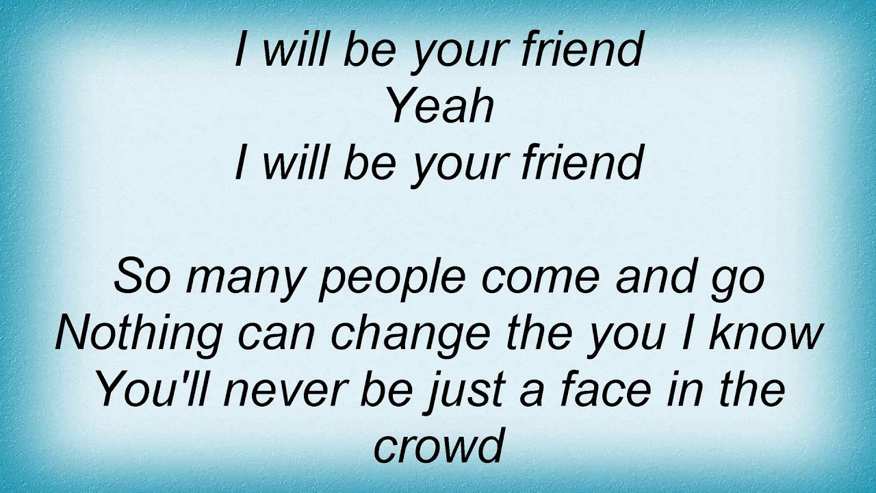 amy grant i will be your friend lyrics is important information accompanied by photo and HD pictures sourced from all websites in the world. Download this image for free in High-Definition resolution the choice "download button" below. If you do not find the exact resolution you are looking for, then go for a native or higher resolution.