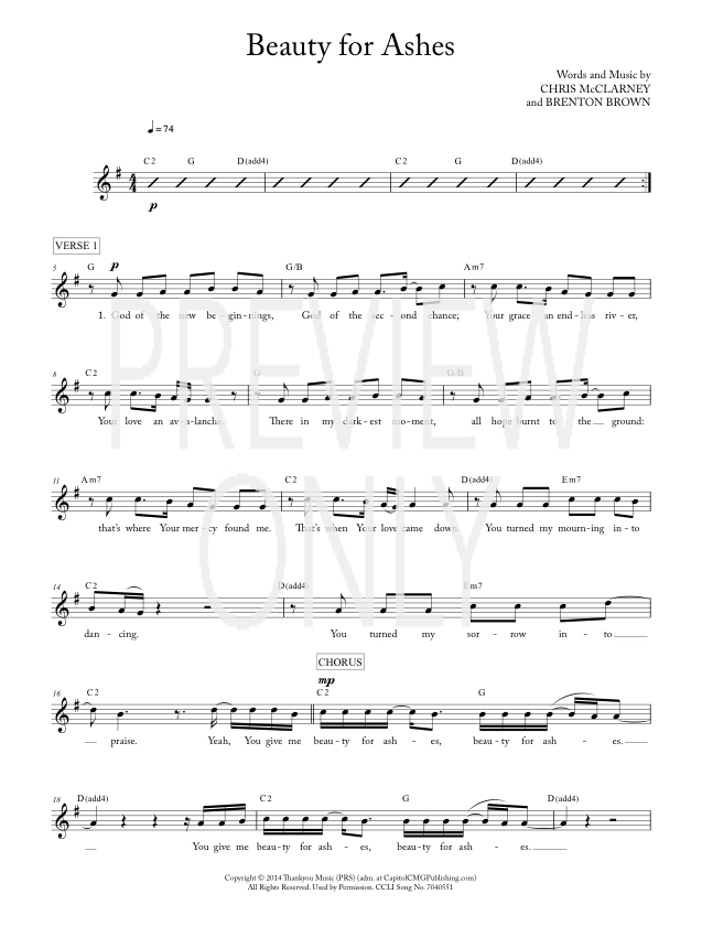 Beauty For Ashes Lead Sheet Lyrics Chords Chris