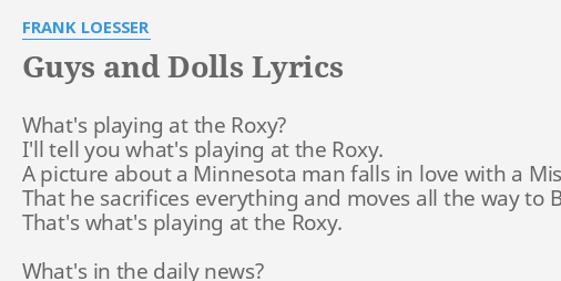 Guys and dolls lyrics from guys and dolls musical. Complete soundtrack list synopsys video plot review cast for guys and dolls show. Ill tell you whats playing at the.
