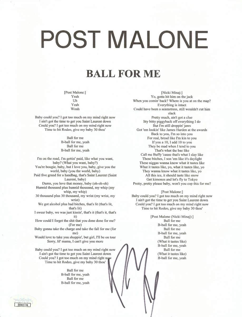 Post Malone Signed Autographed 8 5x11 Lyric Sheet Ball For
