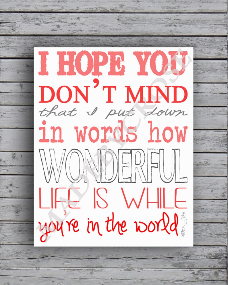 I Hope You Don T Mind That I Put Down In Words 17 X 22 Lyrics By Elton John