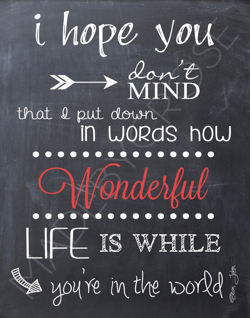Elton John Lyrics I Hope You Don T Mind Chalkboard Print