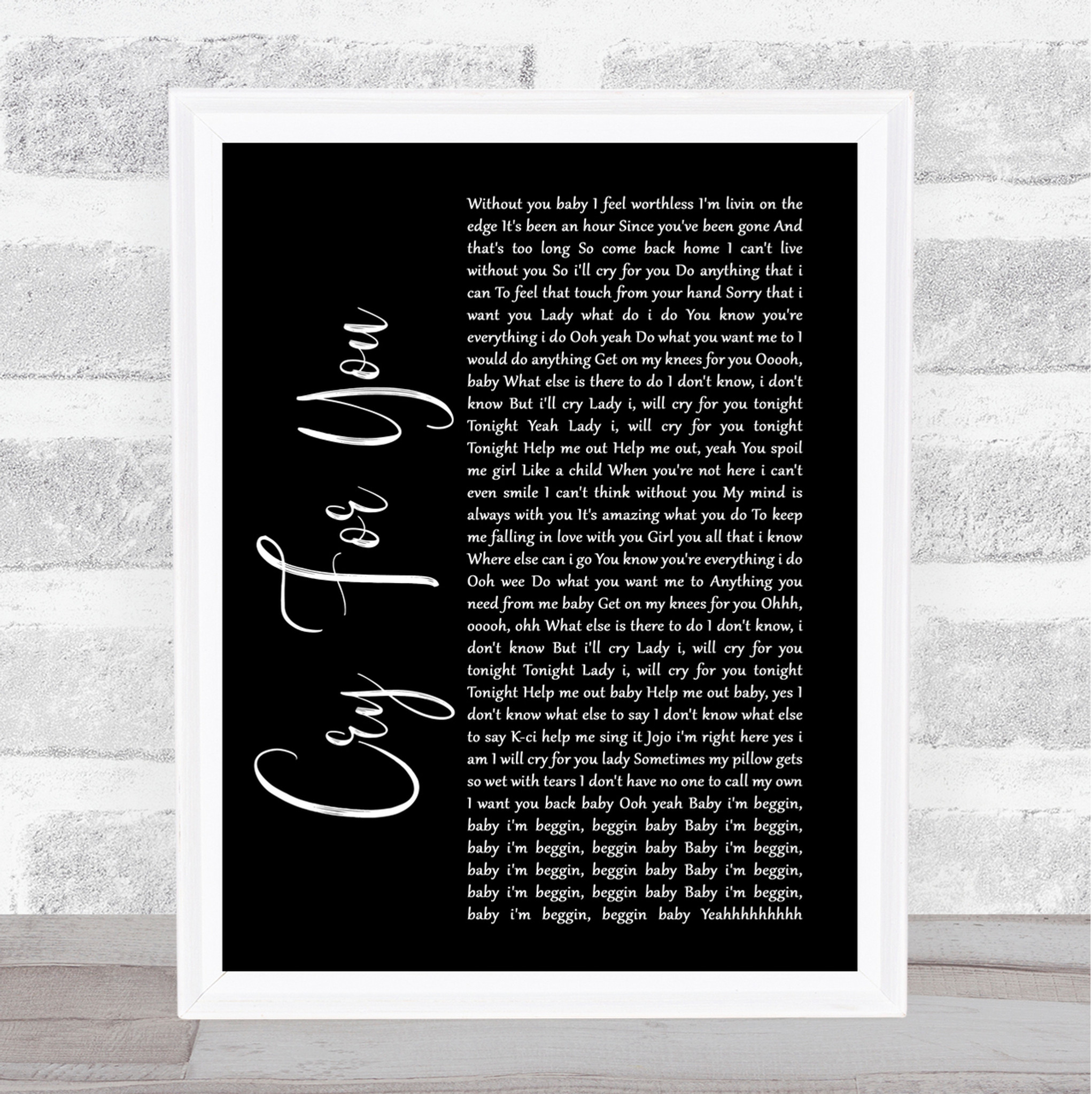 Jodeci Cry For You Black Script Song Lyric Quote Print