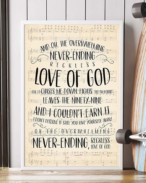 Reckless Love Of God Christian Wall Art Worship Song Lyrics Lettering Bethel Oversized Inspirational Poster Large Format Sign Choose Size