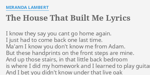 The House That Built Me Lyrics By Miranda Lambert I Know