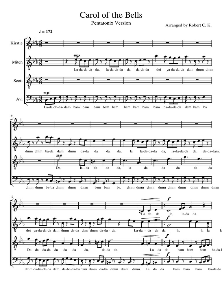 Carol Of The Bells Pentatonix Full Sheet Music W Lyrics