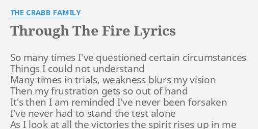 Through The Fire Lyrics By The Crabb Family So Many Times