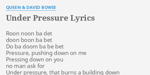 Under Pressure Lyrics By Queen David Bowie Roon Noon Ba