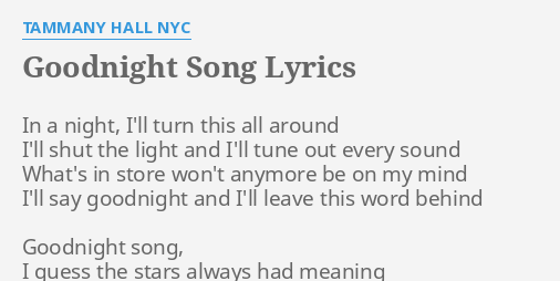 Goodnight Song Lyrics By Tammany Hall Nyc In A Night I Ll