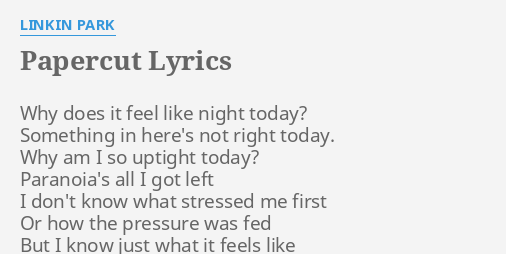 Papercut Lyrics Linkin Park Dolci Suoni Della In