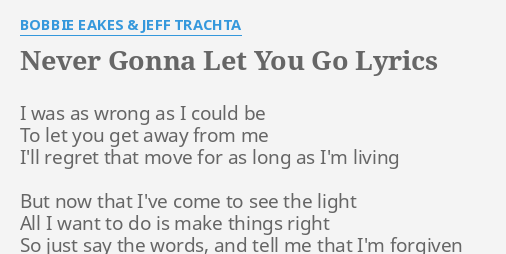 Never Gonna Let You Go Lyrics By Bobbie Eakes Jeff