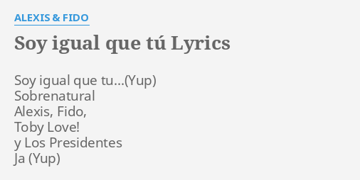 Soy Igual Que Tu Lyrics By Alexis Fido Soy Igual Que Tu