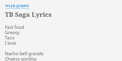 Tyler joseph nacho bell grande cheesy gordita i like your nachos like diarrhea man i really like taco bell verse 2. Taco bell saga lyrics. Lyrics for tb saga by tyler joseph.